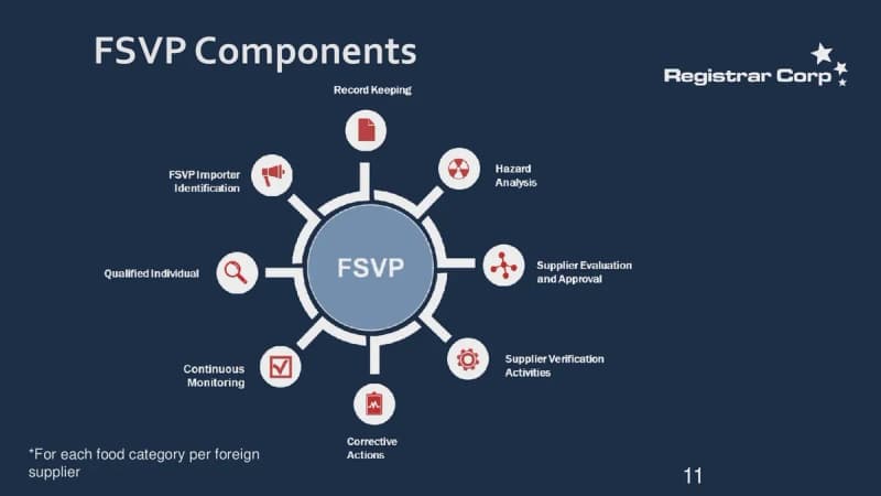 Hầu hết các nhà nhập khẩu thực phẩm của Hoa Kỳ phải phát triển FSVP cho mọi nhà cung cấp nước ngoài trên mỗi sản phẩm mà họ nhập khẩu. FDA yêu cầu FSVP để các nhà nhập khẩu đảm bảo đầy đủ rằng các nhà cung cấp nước ngoài của họ đang sản xuất các thực phẩm đáp ứng các tiêu chuẩn bảo vệ sức khỏe cộng đồng.
