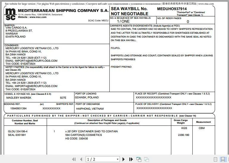 Seaway Bill tuy là một thuật ngữ khá là mới cho các bạn vừa bắt đầu tìm hiểu về lĩnh vực Logistics, nhưng đối với những người làm lâu năm thì chắc chắn không còn quá xa lạ. Nắm bắt được điều đó, chúng tôi xin phép được chia sẻ với các bạn tất cả những thông tin quan trọng của Seaway Bill. Hy vọng bài viết sau đây sẽ giúp được các bạn trong tương lai. Hãy cùng GOL theo dõi bài viết này nhé! Seaway Bill là một loại hợp đồng vận chuyển giữa người gửi hàng và công ty vận tải, thường là các hãng tàu. Thông thường, nó có thể tồn tại dưới dạng tài liệu điện tử hoặc in trên giấy, giống như một loại hóa đơn. Tuy nhiên, Seaway Bill không có giá trị pháp lý cho việc mua bán, không thể chuyển nhượng cho bên thứ ba. Chức năng chính của Seaway Bill là chứng minh quá trình vận chuyển hàng hóa, đối chiếu thông tin về thanh toán trước, xử lý các giao dịch có giá trị thấp và ngăn chặn việc gian lận trong quá trình vận chuyển hàng hóa. Thực tế cho thấy việc sử dụng vận đơn trong quá trình vận chuyển hàng hóa đang gặp phải nhiều khó khăn và trở ngại. Mặc dù, để đảm bảo hàng hóa đến đúng tay người nhận, việc sử dụng bản gốc của vận đơn vẫn là bắt buộc. Tuy nhiên, quá trình vận chuyển vận đơn thông qua đường bưu điện thường gây ra nhiều vấn đề và khó khăn. Ngoài ra, việc cấp và sử dụng vận đơn cũng đòi hỏi một khoản chi phí không nhỏ. Đặc biệt, vận đơn dễ bị làm giả, do đó cần in các chi tiết nhỏ chính xác ở mặt sau, yêu cầu sự tỉ mỉ và công phu. Tổng cộng, vận đơn vẫn được sử dụng rộng rãi trong quá trình giao nhận hàng hóa và đang trong quá trình chuyển từ công nghệ thủ công sang công nghệ hiện đại. Tuy nhiên, vận đơn gặp trễ trên đường bưu điện. Do những khó khăn và trở ngại này, Seaway Bill đã xuất hiện như một giải pháp để giải quyết các vấn đề trong quá trình giao nhận hàng hóa. Seaway Bill là sản phẩm của tiến bộ trong lĩnh vực khoa học, công nghệ và internet, giúp quy trình giao nhận hàng hóa trở nên đơn giản và nhanh chóng hơn. Nó giúp giảm thiểu chi phí phát hành và lưu thông vận đơn cho mọi bên liên quan và loại bỏ lo ngại về việc mất mát vận đơn khi các hãng tàu không cần phải ký vào vận đơn và người mua không phải lo lắng về điều này. Hơn nữa, Seaway Bill đảm bảo rằng chỉ có người nhận hàng (Consignee) cụ thể mới có thể nhận hàng, vì họ phải có tài liệu chứng minh danh tính. Tương tự như các loại vận đơn khác, Seaway Bill cũng có các điều khoản quan trọng được in ở phía sau. Seaway Bill có rất nhiều chức năng quan trọng trong lĩnh vực logistics nói chung và vận chuyển đường biển nói riêng. Vậy nên việc nắm rõ các chức năng này để phục vụ việc vận chuyển là điều bắt buộc mà các doanh nghiệp cần phải làm. Các chức năng đó sẽ bao gồm: Seaway Bill sẽ được sử dụng như một thỏa thuận giữa người mua và người bán. Cả hai bên sẽ có một bản cam kết chung để giúp việc vận chuyển trở nên dễ dàng hơn, không gặp các sự cố đáng tiếc xảy ra. Nó chỉ được sử dụng khi cả hai bên đã tin tưởng nhau từ trước và mọi người nên chú ý rằng Seaway Bill không có tính năng như mã vận đơn. Seaway Bill có thể được sử dụng để đảm bảo tính an toàn cho người dùng. Bởi vì người nhận phải chứng minh được người nhận hàng là họ và thông tin phải có trên manifest. Thay vì không có tính chất như mã vận đơn, nhưng Seaway Bill có chức năng như một tài liệu chuyển nhượng giữa hai bên khi vận chuyển hàng hoá. Tuy nhiên Seaway Bill sẽ không đảm bảo sự an toàn về hàng hoá của các bạn. Cách sử dụng Seaway bill Để giúp các bạn có thể hiểu rõ hơn về Seaway Bill thì chúng ta sẽ cùng nhau tìm hiểu về cách sử dụng của nó. Seaway Bill thường được sử dụng bởi các công ty có mối quan hệ tốt và thân thiết khi thời gian gửi hàng bằng đường biển ngắn hơn so với thời gian gửi B/L từ cảng xếp đến cảng dỡ. Seaway Bill sẽ chỉ được sử dụng với bill đích danh. Khi sử dụng Seaway Bill, Shipper có thể gửi fax hoặc email cho consignee tại cảng đến mà không cần phải gửi trực tiếp bản gốc. Việc làm này sẽ giúp cho shipper đỡ mất thời gian cũng như chi phí vận chuyển. Còn đối với các Carrier, họ sẽ chỉ cần dùng 1 thay vì đến 3 bản gốc và không cần phải in mặt sau như hoá đơn thông thường. Thay vào đó sẽ là các điều khoản, điều kiện, quy định về việc vận chuyển trên mặt trước một cách ngắn gọn nhất. Tuy là thuận tiện như vậy song Seaway Bill vẫn chưa được phổ biến quá nhiều tại Việt Nam. Sau khi đã tìm hiểu hết tất cả những thông tin liên quan đến Seaway Bill. Thì chắc chắn việc phân việc giữa Seaway và Surrender Bill sẽ là một trong những điều mà các bạn muốn biết nhất. Vậy nên hãy theo dõi thật kỹ nhé! Surrendered Bill Seaway Bill Giá trị pháp lý mua bán Có giá trị pháp lý khi mua, bán